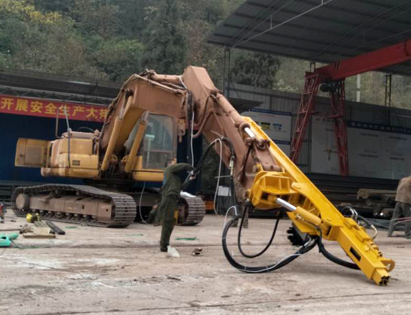 1、安裝拆卸方便。挖掘機小臂不用拆卸,不影響挖掘機自身功能,直接類似掛破碎錘一樣,管路系統都可以共用,真正實現一機五用并互換:挖土、破碎錘、切削鉆、鑿巖機、潛孔鉆。拆卸時間和換斗時差不多,約10-20分鐘。