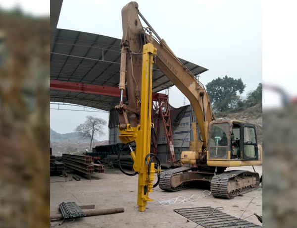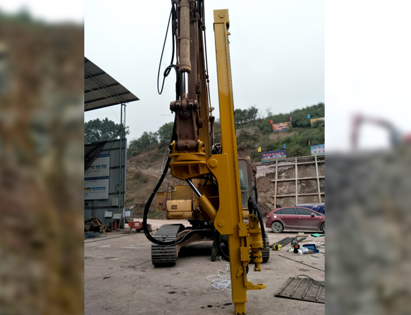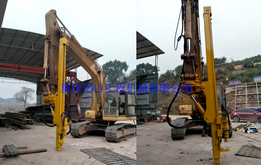 2、前后左右自由伸展,當挖掘機在工地不平坦的情況下, 挖機手可根據位置不同調整鉆桿角度,保持90°垂直鉆孔。