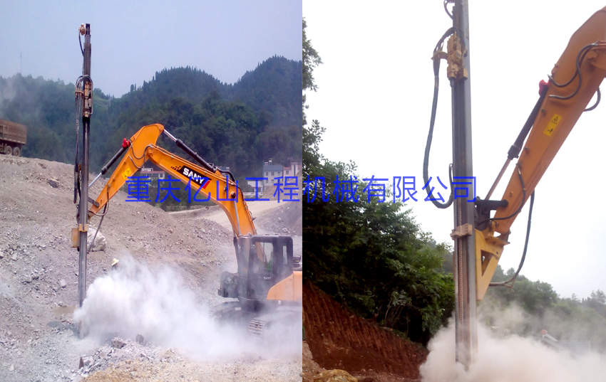 億山ES300挖改全液壓鑿巖機(jī),廣泛適用于花崗巖、石灰石、大理石、火山石、青石、玄武巖等硬度較高的堅巖石的各種爆破前鉆孔作業(yè)(硬度F大于6級);可以借助挖機(jī)的操作靈活性用于錨桿鉆孔;也遠(yuǎn)遠(yuǎn)低于一體式鑿巖鉆機(jī)的采購價格。具操作簡易,設(shè)計人性化,感觀直接,實現(xiàn)挖掘機(jī)一機(jī)多用等特性。