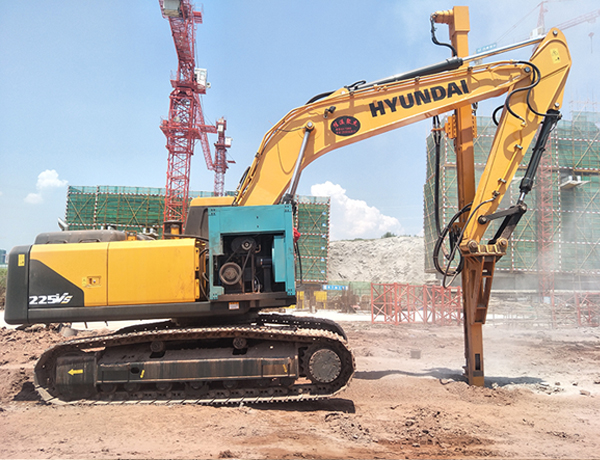 1、安裝拆卸方便。挖掘機小臂不用拆卸,不影響挖掘機自身功能,直接類似掛破碎錘一樣,管路系統都可以共用,真正實現一機五用并互換:挖土、破碎錘、切削鉆、鑿巖機、潛孔鉆。拆卸時間和換斗時差不多,約10-20分鐘。