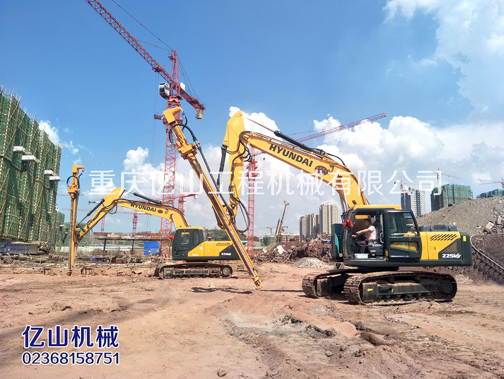 3、作業半徑擴大化 。因為挖掘機小臂不拆,它的作業半徑可以延長作業半徑2-3米,且仰角打孔、水平打孔、豎直打孔都可以實現。