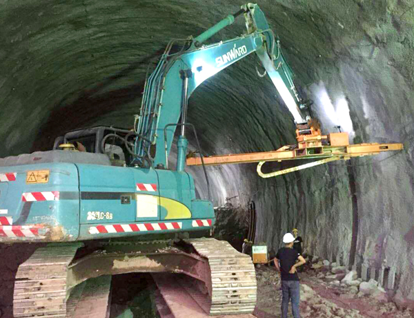 遼寧沈陽中鐵-神鋼挖機改裝隧道錨桿鉆機38-54mm4米深
