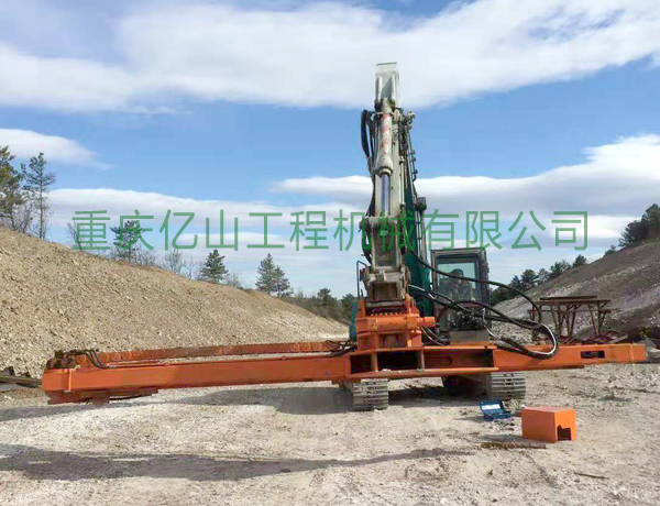 2、前后左右自由伸展,當(dāng)挖掘機(jī)在工地不平坦的情況下, 挖機(jī)手可根據(jù)位置不同調(diào)整鉆桿角度,保持90°垂直鉆孔,爭(zhēng)取實(shí)現(xiàn)有效爆破。