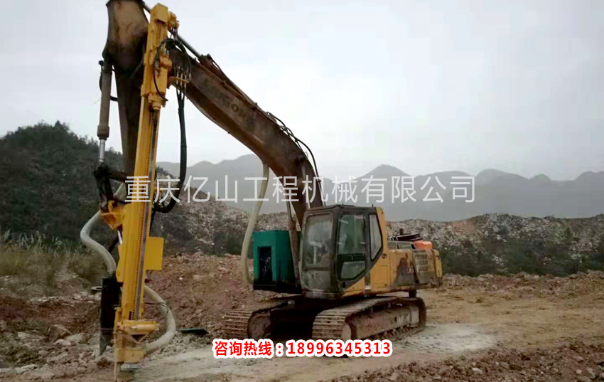 四川綿陽(yáng)--挖機(jī)改裝全液壓鑿巖鉆機(jī)(90孔-1-15米)定制