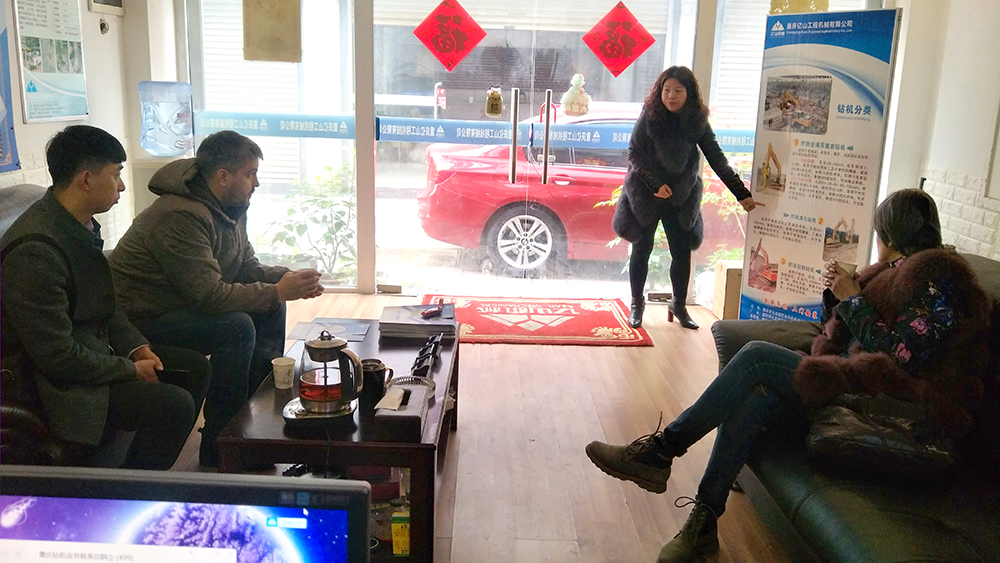 2019年12月12日,俄羅斯客戶來我公司考察挖機改全液壓鑿巖鉆機,我公司總經(jīng)理秦玲熱情接待并詳細講解!