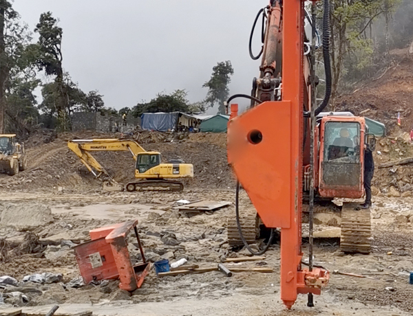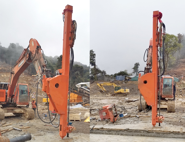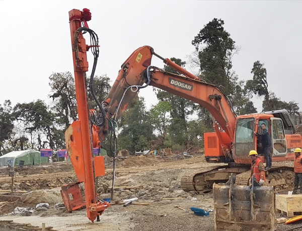 西藏墨脫--斗山230挖機改裝液壓鑿巖鉆機(90孔3-8米)接桿