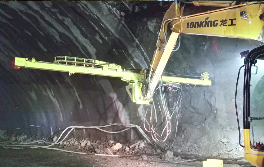 億山ES300挖改全液壓鑿巖機,廣泛適用于花崗巖、石灰石、大理石、火山石、青石、玄武巖等硬度較高的堅巖石的各種爆破前鉆孔作業(硬度F大于6級);可以借助挖機的操作靈活性用于錨桿鉆孔;也遠遠低于一體式鑿巖鉆機的采購價格。具操作簡易,設計人性化,感觀直接,實現挖掘機一機多用等特性。