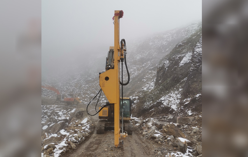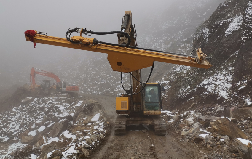西藏墨脫--冰天雪地的挖改液壓鑿巖機(jī)