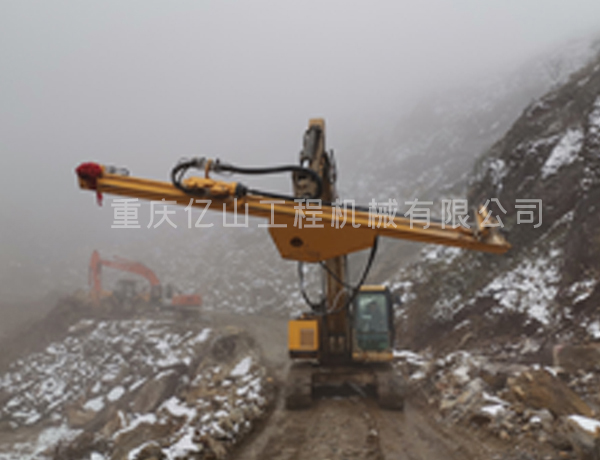 億山ES300挖改全液壓鑿巖機(jī),廣泛適用于花崗巖、石灰石、大理石、火山石、青石、玄武巖等硬度較高的堅(jiān)巖石的各種爆破前鉆孔作業(yè)(硬度F大于6級(jí));可以借助挖機(jī)的操作靈活性用于錨桿鉆孔;也遠(yuǎn)遠(yuǎn)低于一體式鑿巖鉆機(jī)的采購(gòu)價(jià)格。具操作簡(jiǎn)易,設(shè)計(jì)人性化,感觀直接,實(shí)現(xiàn)挖掘機(jī)一機(jī)多用等特性。