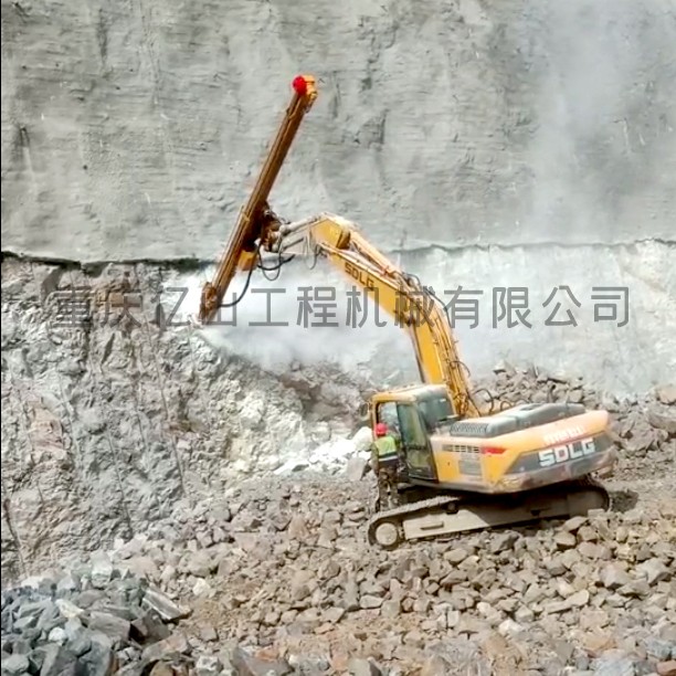 億山ES300挖改全液壓鑿巖機,廣泛適用于花崗巖、石灰石、大理石、火山石、青石、玄武巖等硬度較高的堅巖石的各種爆破前鉆孔作業(硬度F大于6級);可以借助挖機的操作靈活性用于錨桿鉆孔;也遠遠低于一體式鑿巖鉆機的采購價格。具操作簡易,設計人性化,感觀直接,實現挖掘機一機多用等特性。