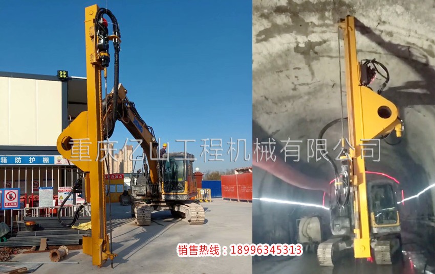 1、安裝拆卸方便。挖掘機小臂不用拆卸,不影響挖掘機自身功能,直接類似掛破碎錘一樣,管路系統都可以共用,真正實現一機五用并互換:挖土、破碎錘、切削鉆、鑿巖機、潛孔鉆。拆卸時間和換斗時差不多。