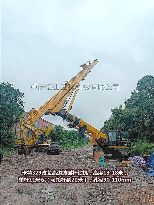 卡特329改裝高邊坡錨桿鉆機,高度13-18米,單桿11米深(可接桿到20米),孔徑90-110mm