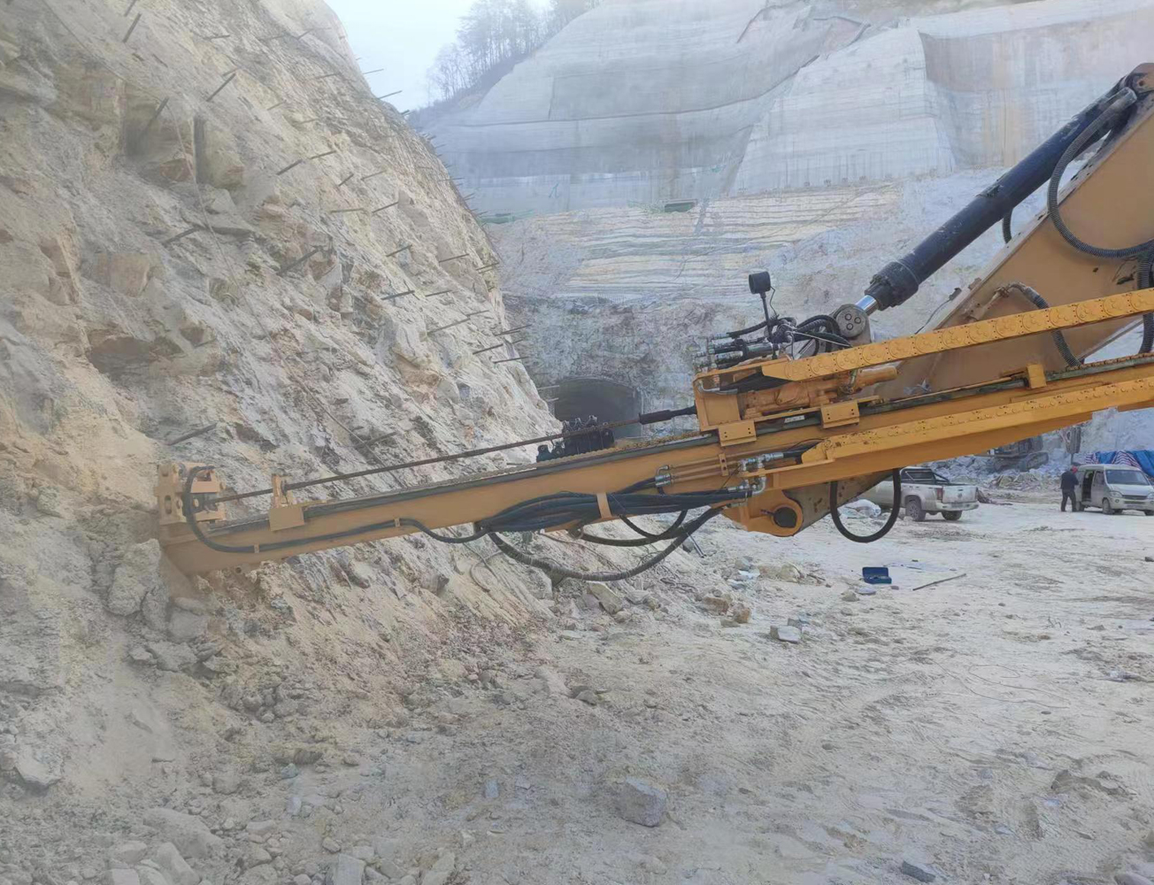 5、采用億山專業研發的先進自動化鑿巖液壓系統,實現鑿巖的高功效,快進快退,高低壓沖擊,自動切換。
