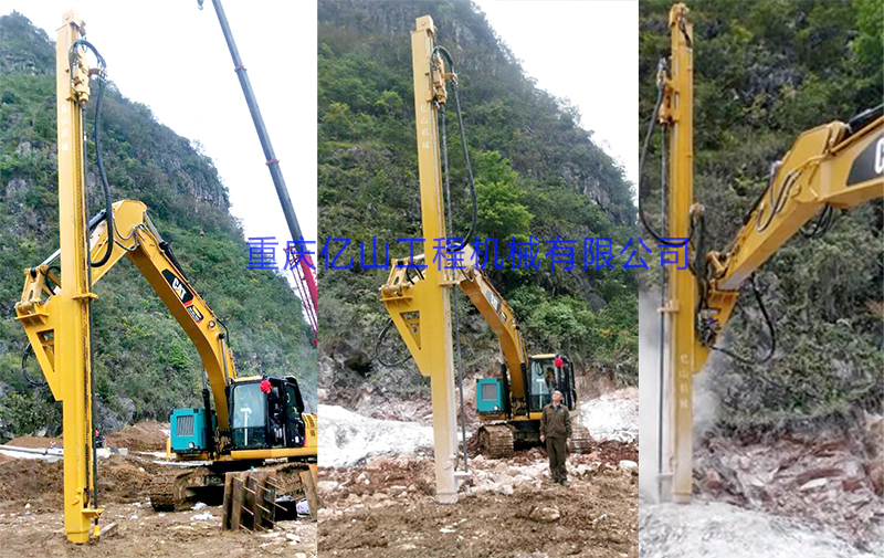2、前后左右自由伸展,當挖掘機在工地不平坦的情況下, 挖機手可根據位置不同調整鉆桿角度,保持90°垂直鉆孔。
