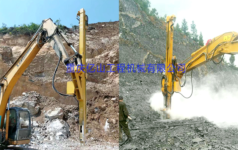 億山ES300挖改全液壓鑿巖機,廣泛適用于花崗巖、石灰石、大理石、火山石、青石、玄武巖等硬度較高的堅巖石的各種爆破前鉆孔作業(硬度F大于6級);可以借助挖機的操作靈活性用于錨桿鉆孔;也遠遠低于一體式鑿巖鉆機的采購價格。具操作簡易,設計人性化,感觀直接,實現挖掘機一機多用等特性。