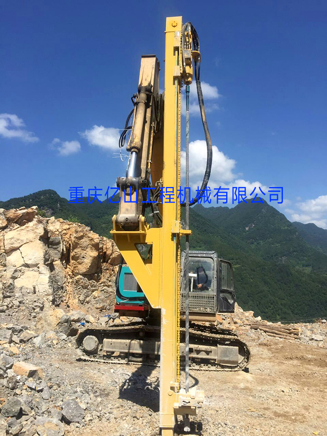 四川巴中-柳工挖機改全液壓鑿巖機(60-90孔5米)工地現場