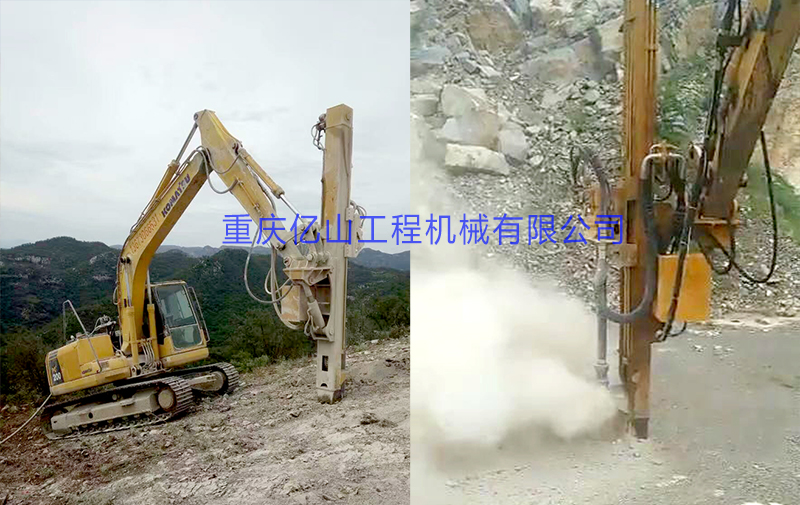 億山挖改潛孔鉆機各系列產品,廣泛適用于花崗巖、石灰石、大理石、火山石、青石、玄武巖、頁巖、砂巖、風化巖、泥巖等所有巖石的各種爆破前鉆孔作業;借助挖機的操作靈活性也可用于錨桿鉆孔以及孔徑較大的光伏孔;使用效率高于傳統的分體式潛孔鉆機。具操作簡易,設計人性化,感觀直接,實現挖掘機一機多用等特性。
